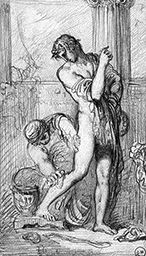 Sujets iconographiques : Ulysse reconnu par sa nourrice Euryclée ; Odyssée ; Ulysse ; Euryclée