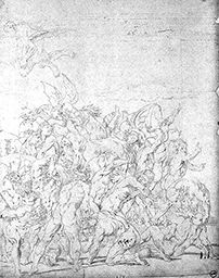 Copie d’après Luca Signorelli, Le Jugement dernier. Les Damnés de l’Enfer, détail (Orvieto, cathédrale), reproduit dans Stampe del Duomo di Orvieto. Dedicate alla Santità di Nostro Signore Pio Sesto Pontifice Massimo, Rome, 1791, tav. XXXIII
