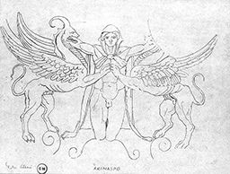 Copie d’après Arimaspo, bas-relief (Rome, villa Albani), reproduit dans Li bassirilievi antichi di Roma incisi da Tommaso Piroli colle illustrazioni di Giorgio Zoega, pubblicati in Roma da Pietro Piranesi, Rome, 1808, t. II, tav. CIX