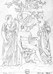 Copie d’après Ercole fra le Esperidi, bas-relief (Rome, villa Albani), reproduit dans Li bassirilievi antichi di Roma incisi da Tommaso Piroli colle illustrazioni di Giorgio Zoega, pubblicati in Roma da Pietro Piranesi, Rome, 1808, t. II, tav. LXIV