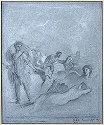 Technique : Craie blanche ; mine de plomb ; papier bleu