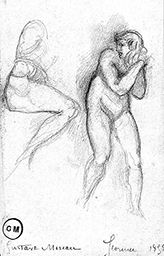 La femme nue debout pourrait être une copie d’Eve d’après Michel-Ange, L’Expulsion du Paradis terrestre (Vatican, chapelle Sixtine), que Moreau aurait pu réaliser d’après une reproduction lors de son séjour à Florence.