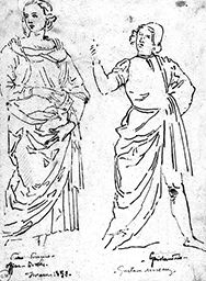 Copie de jeune femme d’après le Pérugin, Jeune femme (Florence, musée des Offices, cabinet des Dessins, Inv. 399E). Copie d’homme d’après David Ghirlandaio, Figures masculines, détail (Florence, musée des Offices, cabinet des Dessins, Inv. 283E)
