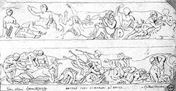 Copie d’après Ercole frai compagni di Bacco, bas-relief (Rome, villa Albani), reproduit dans Li bassirilievi antichi di Roma incisi da Tommaso Piroli colle illustrazioni di Giorgio Zoega, pubblicati in Roma da Pietro Piranesi, Rome, 1808, t. II, tav. LXXII