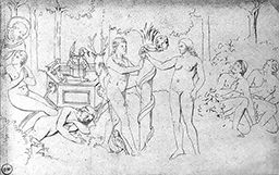 Copie d’après Piero di Puccio, La Création d’Eve. Le Péché originel. Eve après le péché originel, détail (Pise, Campo Santo)