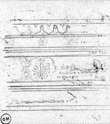 Inscr. c. dr. : or / or. / or . / or . / filet d’or / fond bleu / ornements se détachant / en blanc gris / or