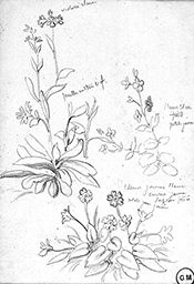 Inscr. h. g. : violassé clair – / feuilles vert très vif . ; c. dr. : fleurs bleu / froid / petale jaune / fleurs jaunes blanc / envers jaune / safran foncé / petale jaune foncé