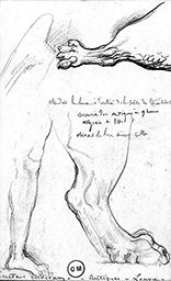 Inscr. c. dr. : étudier la louve à l’entrée de la salle des Cariatides / musée des antiques à 9 heure / assyrien a 10. / étudier le lion même salle ; b. dr. : – Antiques – Louvre –