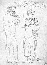 Inscr. h. dr. : Observation touchant la peinture des anciens – / toute nouvelle . Composition – groupe drame – tout théâtral – / aucun soupçon . de cette intuition toute moderne / dont les résultats sont de faire passer . la réalité par la exigence / d’art α d’imagination – α de convention . / Voir Raoul Rochete – / Peinture de / – Naples – ; b. g. : Idole Egyzio