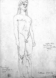 Inscr. b. g. : Moulages / Ravaisson – ; c. dr. : apollon Tenéa / Ecoles primitives / jambes α bien restaurés / Athènes –