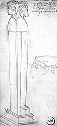 Inscr. h. dr. : étudier les allées du Pinc / avec petits carrés de buis . / id le jardin de l’academie . / id. la statue au Pincio de / l’Esculape valeurs sur le ciel