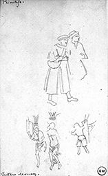Copie d’infirmes d’après Mariotto di Nardo, Quatre scènes de la légende de saint Laurent. Saint Laurent en prison baptise son geôlier Hippolyte et guérit les aveugles et les infirmes, détail (Avignon, musée du Petit Palais, collection Campana, Inv. M.I. 389). Copie de Flagellation d’après Mariotto di Nardo, Scènes de la vie du Christ, détail (Avignon, musée du Petit Palais, collection Campana, M.I. 372 à 380)