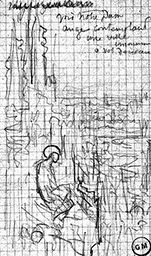 Inscr. h. : [mots raturés] / voir Notre Dame / Ange contemplant / une ville / immense / a vol d’oiseau