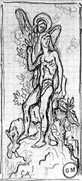 Plume et encre noire, mine de plomb sur papier quadrillé beige