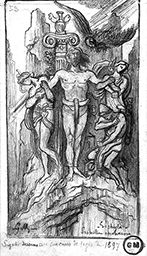 Inscr. h. g. : 53 ; b. dr. : – Eschyle – / Prométhee enchaine ; b. : Sujet dessiné au concours de loges de 1897