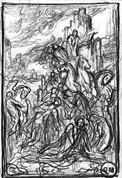Peinture de Gustave Moreau : Darius fuyant après la bataille d’Arbelles s’arrête, épuisé de fatigue, pour boire dans une mare
