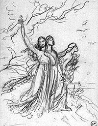 Peinture de Gustave Moreau : Jeunes filles dans un paysage