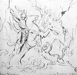 Etude en rapport avec Saint Georges terrassant le dragon (Londres, The National Gallery, NG 6436 ; Copenhague, Statens Museum for Kunst, KKS1977-475 ; M n° 132)